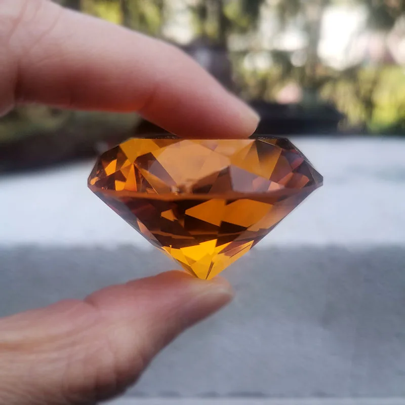 Amber Crystal Diamond Paperweight Faceted Diamonds Glass Gemstone Figurine Home Wedding Party Decoration Ornament Giant Gemstone