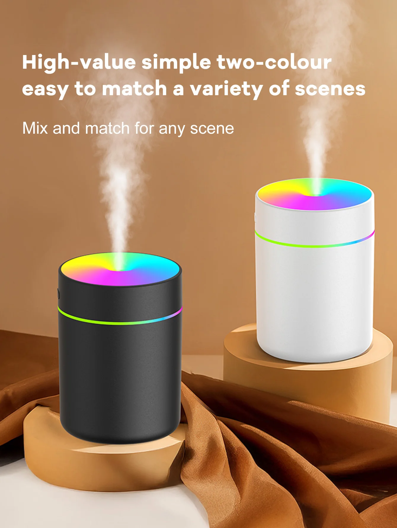 Mini USB portable air humidifier, aroma diffuser, LED cool light, for room, home, car, plant purifier, 250 ml.
