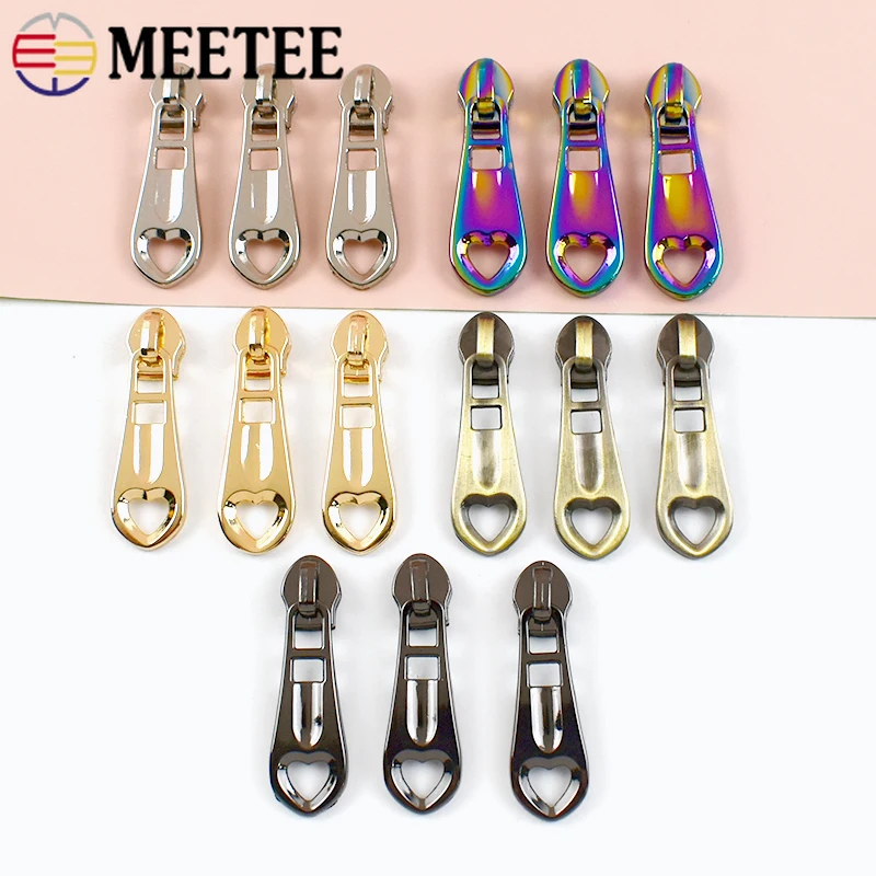 10/30/50/100Pcs 3# 5# Sewing Zipper Slider Closure for Nylon Zippers Tapes Heart Zips Pulls Head DIY Repair Kits Bag Accessories