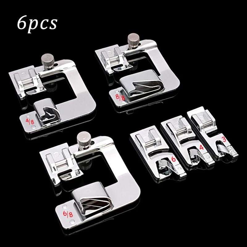 6pcs Sewing Accessories Rolled Hem Feet 4/8 6/8 8/8 and 3/4/6mm Sewing Machine Presser Foot Set Domestic Sewing Tools Essential