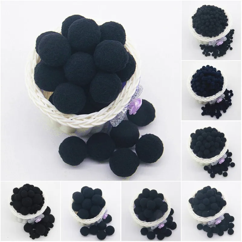 Black Pompom 8mm 10mm 15mm 20mm 30mm Pom Poms Ponpon Crafts Supplies DIY for Kids Toy Garment Sewing Home Wedding Decorations