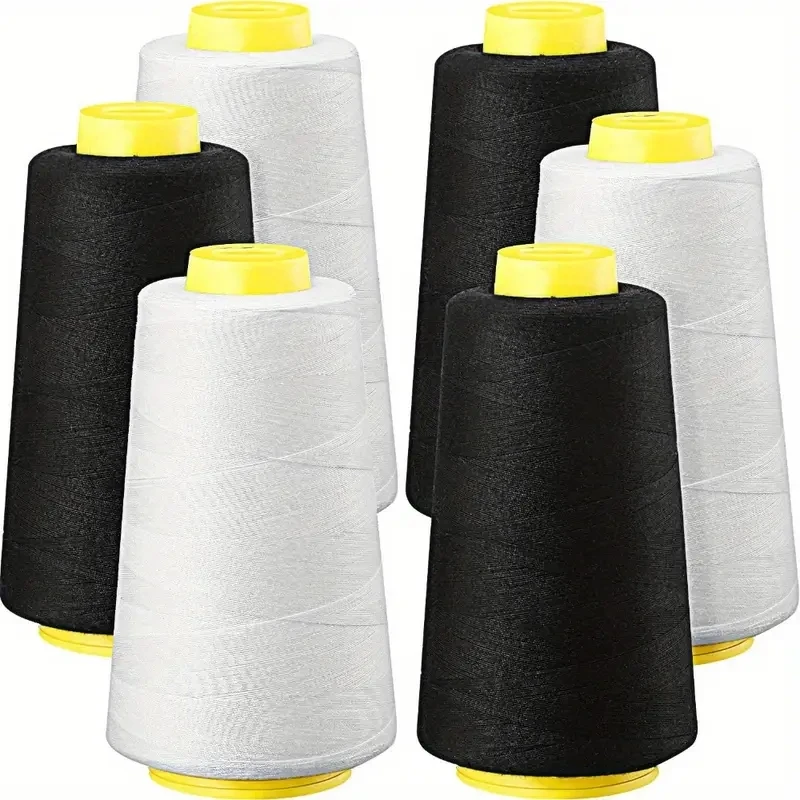 3 Black + 3 White Overlock Thread Cones - 3000Yards Serger Thread for Sewing Machine, 402 Polyester Cone Thread for Overlocking