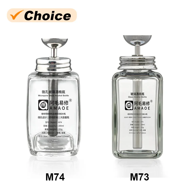 AMAOE M73 M74 Micropore Glass Alcohol Bottle for Phone Maintenance Stainless Steel Pipe Press Type Repair Liquid Glass Bottle