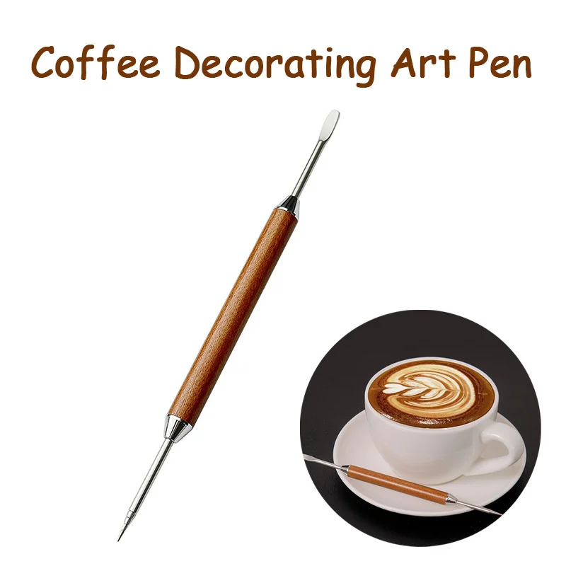Stainless Steel Coffee Decorating Art Pen Wooden Handle Latte Pull Flower Needle Barista Tool Coffee Accessories Modeling Tool