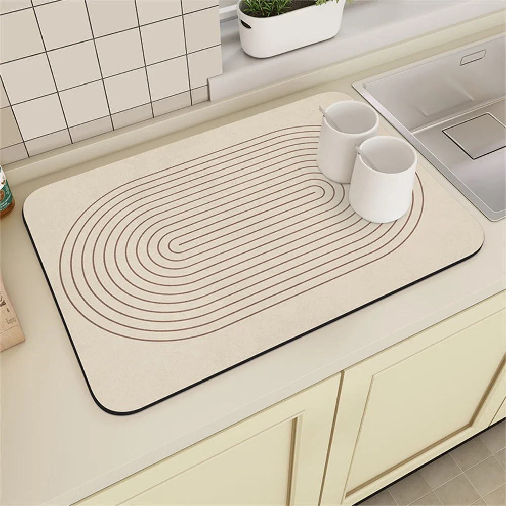 Coffee Machine Drain Mat Kitchen Countertop Absorbent Mat Cream Lines Simple Table Washable Dry Non-slip Mat