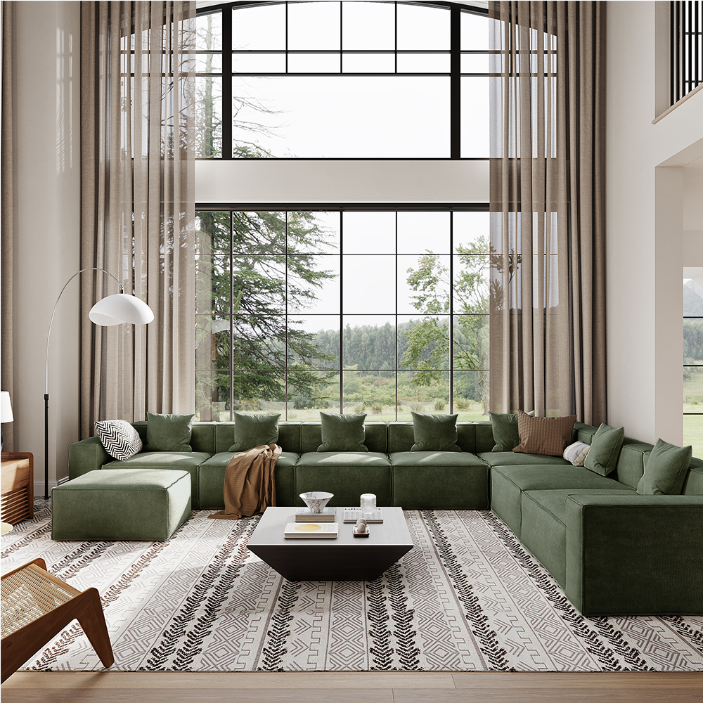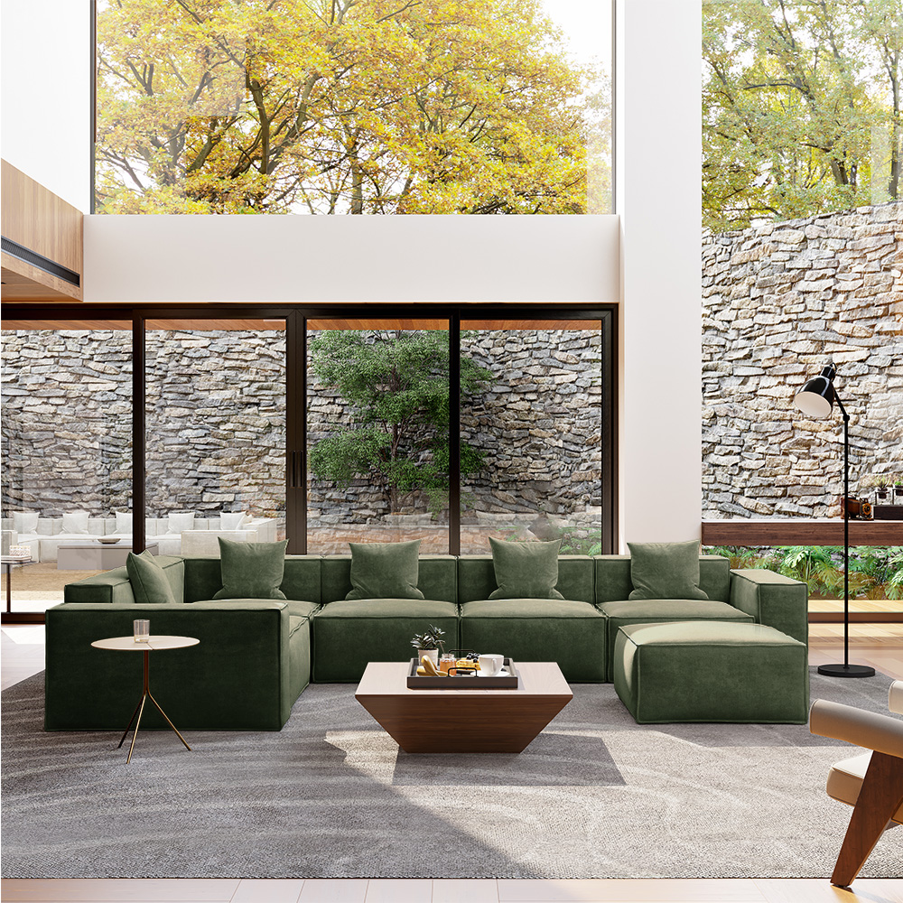 174.77" Modular Sofa, L-Shape Sofa with Couch Ottoman, Oversized Sofa, Anti-scratch and Water-proof, Green