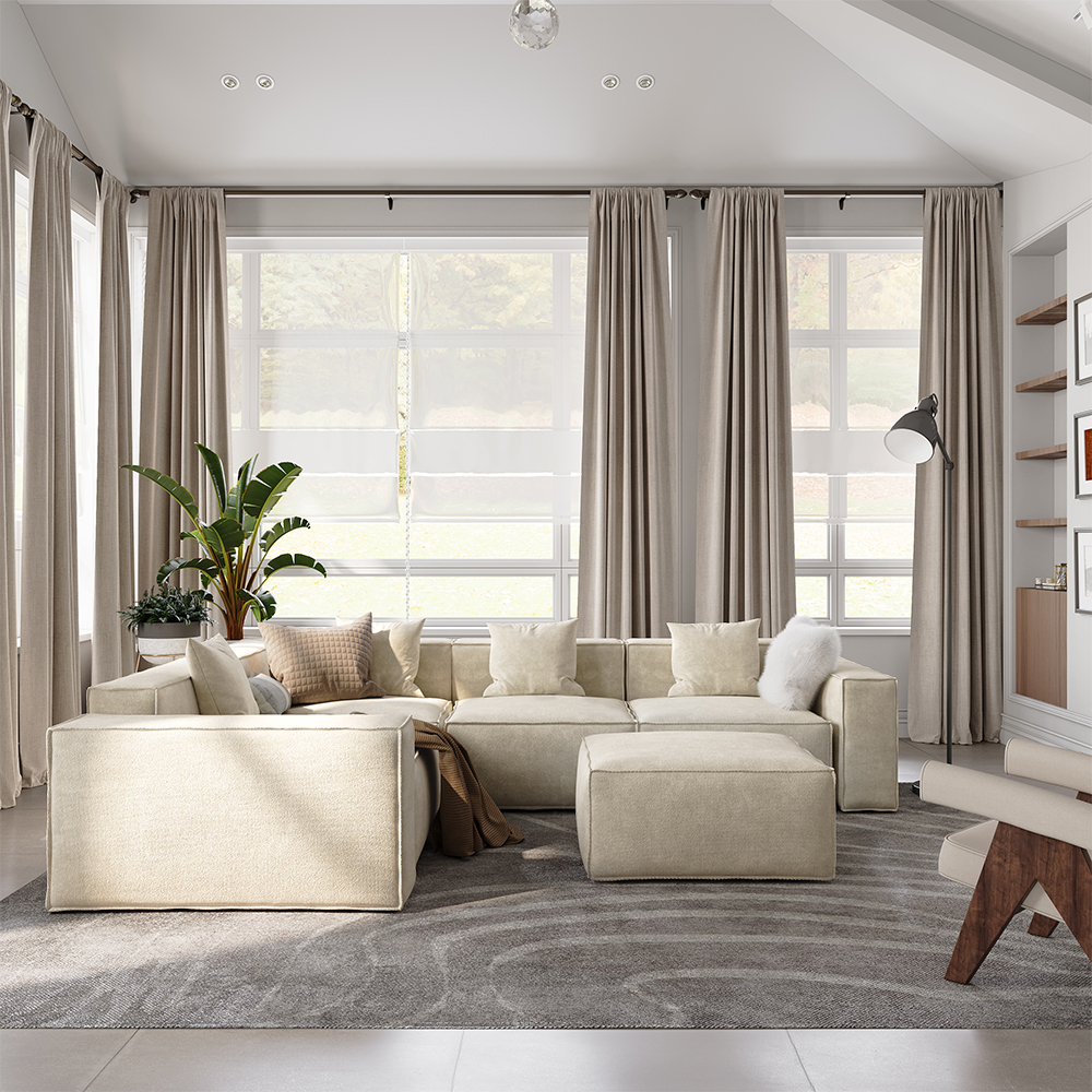 143.30" Modular Sofa, L-Shape Sofa with Couch Ottoman, Oversized Sofa, Anti-scratch and Water-proof, Beige