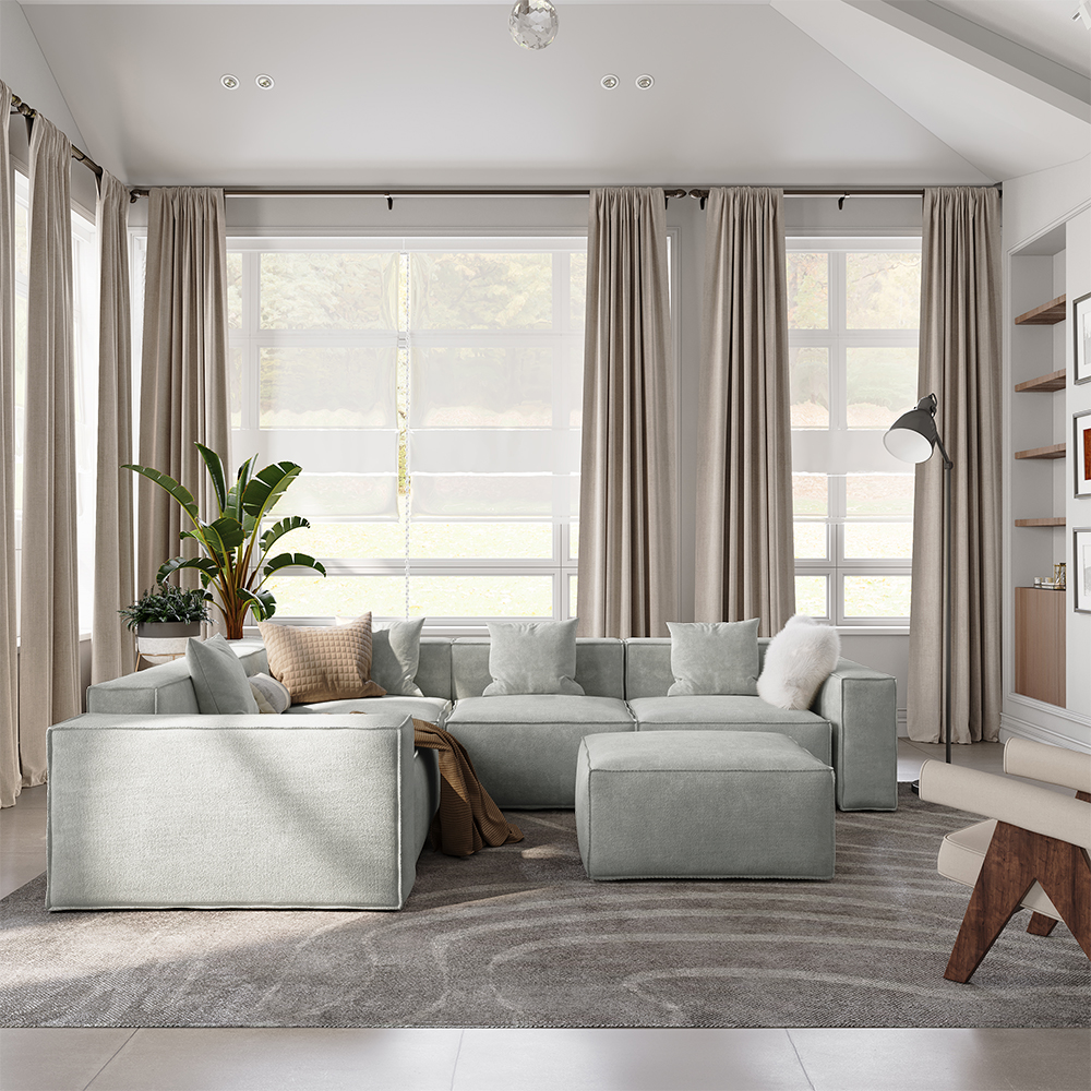 143.30" Modular Sofa, L-Shape Sofa with Couch Ottoman, Oversized Sofa, Anti-scratch and Water-proof, Light Gray
