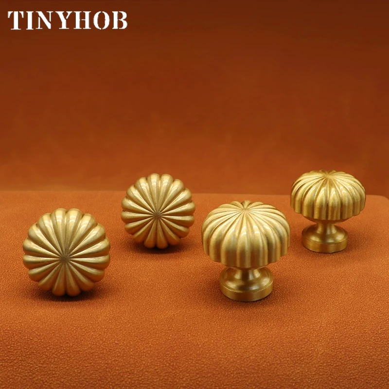TINYHOB /Solid Brass Furniture Handles Simple Nordic Pastoral Wardrobe Dresser Knobs Cupboard Cabinet Drawer Round Gold Pulls