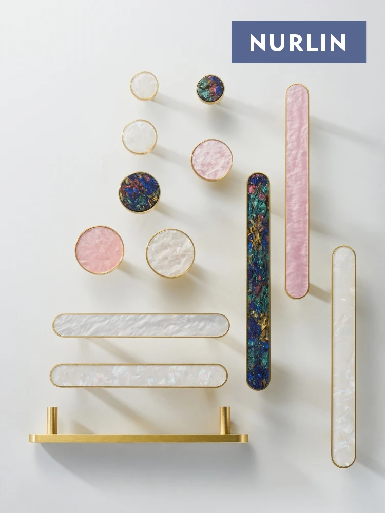 Nurlin Brass Colorful Round White Pink Shell Color Cabinet Wardrobe Furniture Knobs Long Series Handles