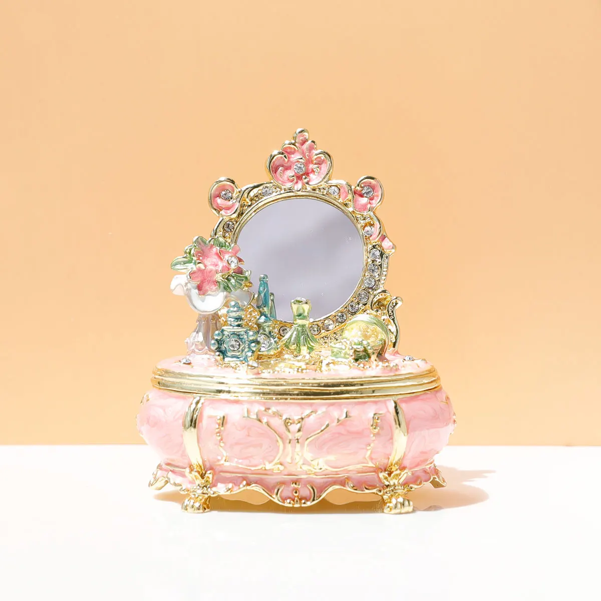 Blue Dressing Table Trinket Box Hinged, Hand Painted Enamel Figurine Collectible, Unique Gift for Home Decor  Read more
