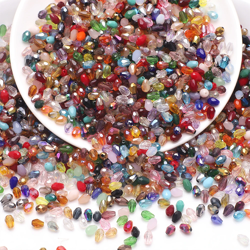 50-100Pcs/Lot 3x5 4x6 6x8 Tear Drop Pendant Mixed Color Loose Teardrop Faceted Glass Bead for Jewelry Making DIY Hand needlework