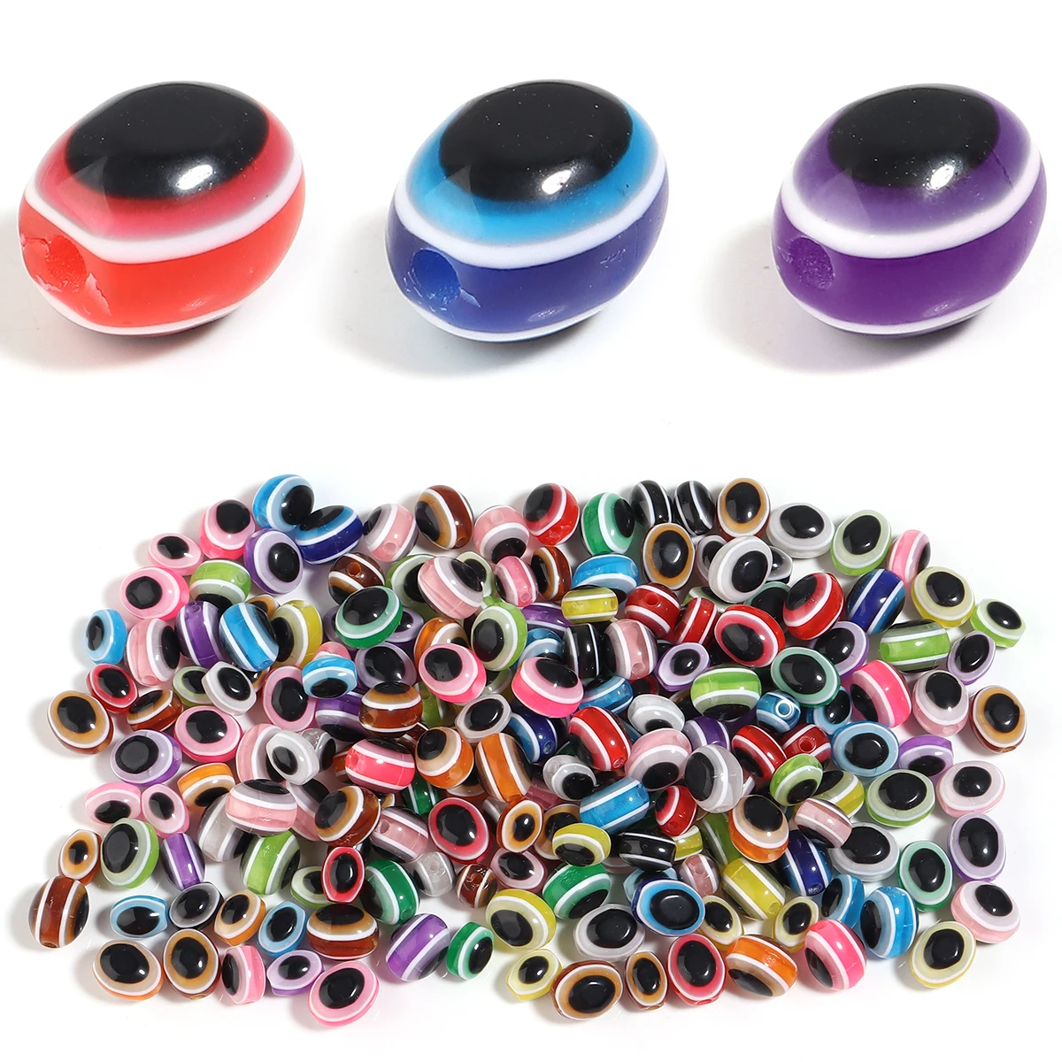 100pcs 6x8 8x10mm Oval Resin Beads Evil Eye Beads Loose Spacer Beads For Jewelry Making DIY Charms Necklace Bracelet Accessories