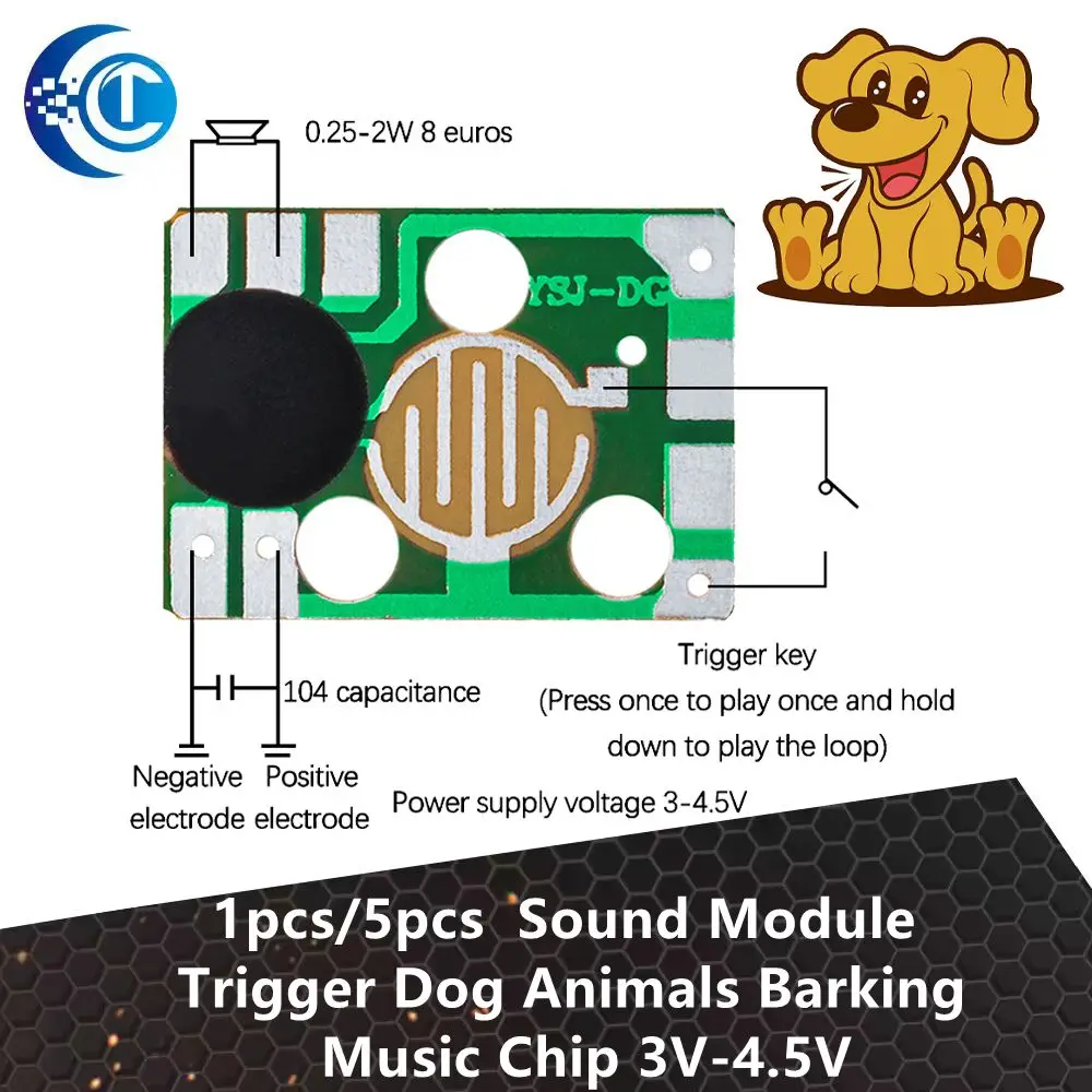 1pcs/5pcs Sound Module Trigger Dog Animals Barking Music Chip 3V-4.5V Yelp Voice Module for DIY/Toy
