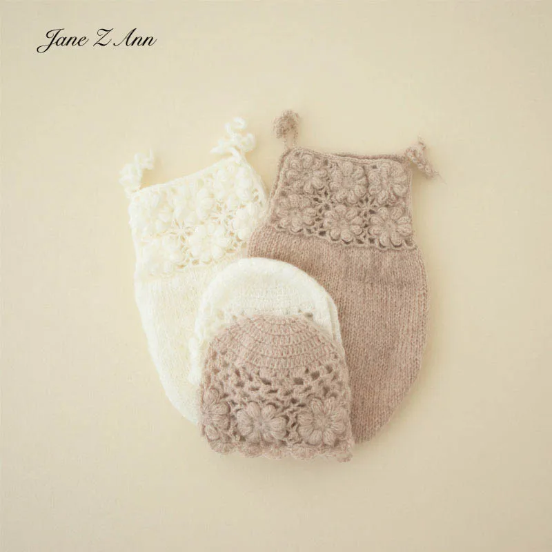 Handmade newborn flower romper se baby girl photography props chochet suspender onesie with matching hat white khaki colors
