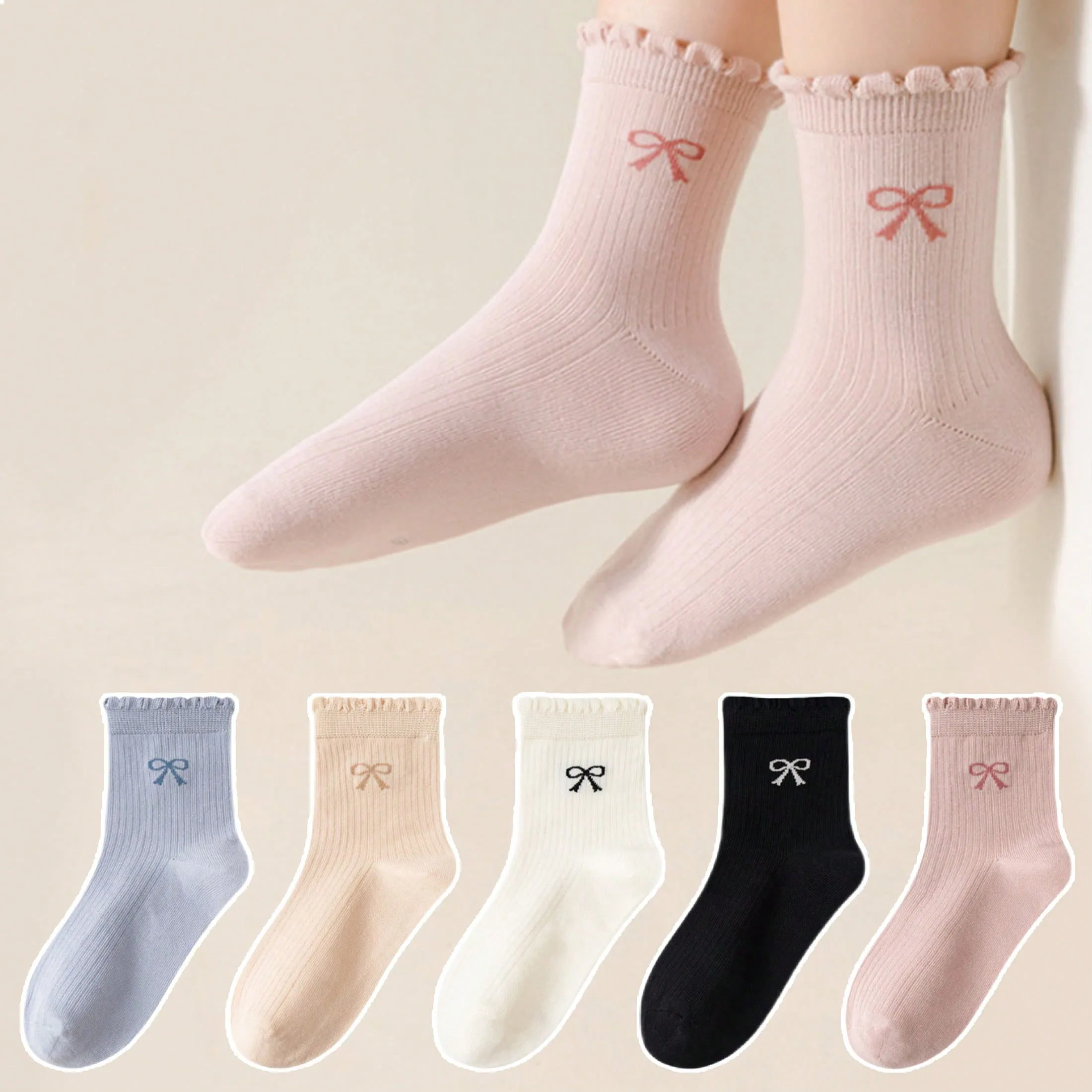 3 Pairs of Random Mixed Color Kidsren's Socks with Lace Bow Patterns for Girls and Babies, Versatile Mid-Calf Socks for All Seasons Suitable for Daily Life