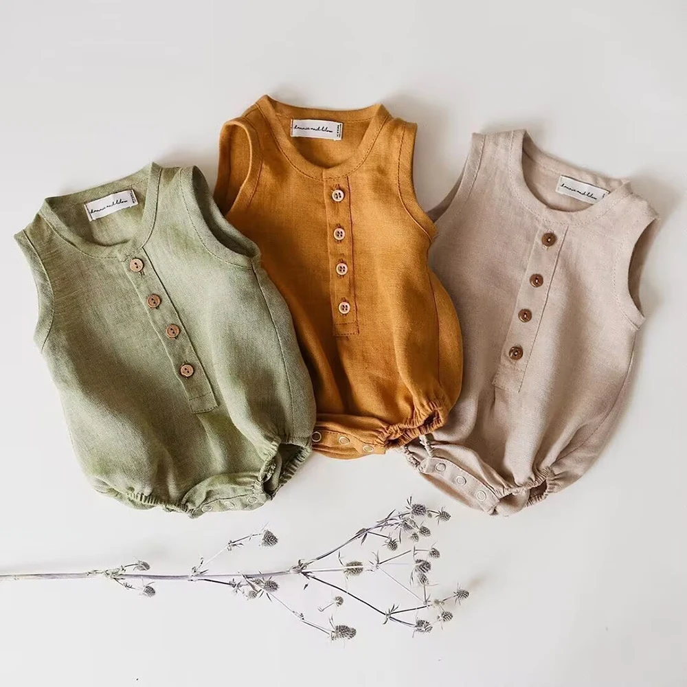 Newborn Baby Boys Linen Cotton Romper Soft Breathable Sleeveless bodysuits Infant Jumpsuit Toddler Girls One-Piece Clothes 0-24m
