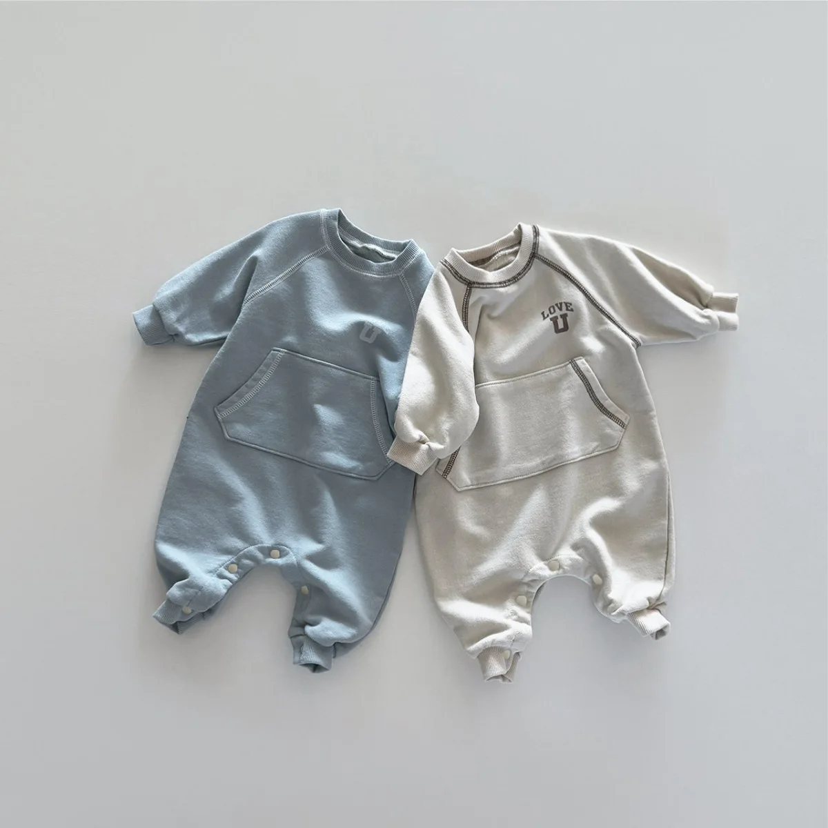 2025 Autumn New Baby Letter Print Casual Romper Newborn Infant Boy Girl Long Sleeve Big Pocket Jumpsuit Toddler Clothes 0-24M