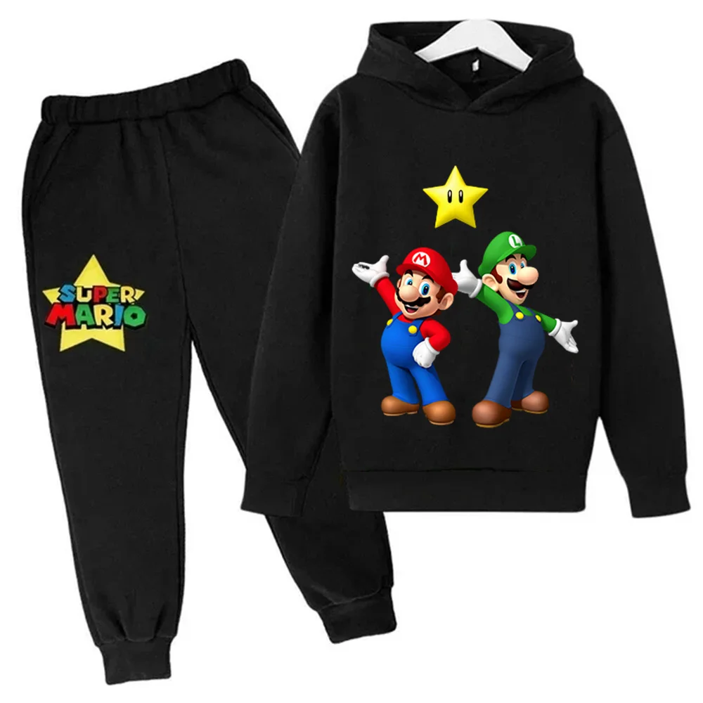 2025 Boys Girls Clothes Super Mario Hoodie Set Kids 2pcs Spring Autumn Toddler Girls Cartoon Hooded +pants Tracksuit Clothing