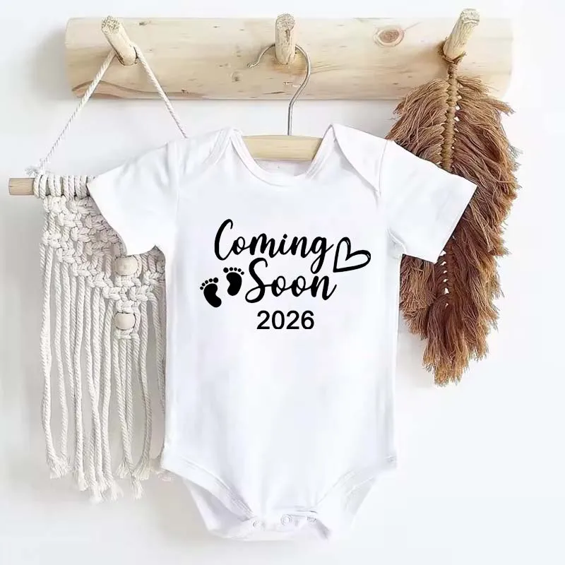 Baby Boys Girls Short Sleeve Romper Funny Coming Soon 2026 Letter Printed Newborn Clothes Infant Baby Jumpsuit Bodysuit