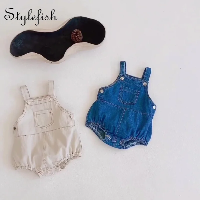 Fashion clothing for baby boys' and girls' 2022Denim straps puff coat 0-2 years old cotton jumpsuit climbing suit