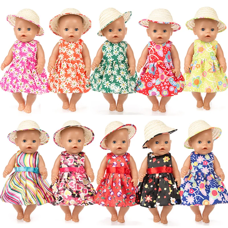 16-18Inch/40-45cm Doll Hat Dress Set Born Baby Clothes Rebirth Doll American Girl Floral Dress Sun Hat Doll Accessory Girl Gift