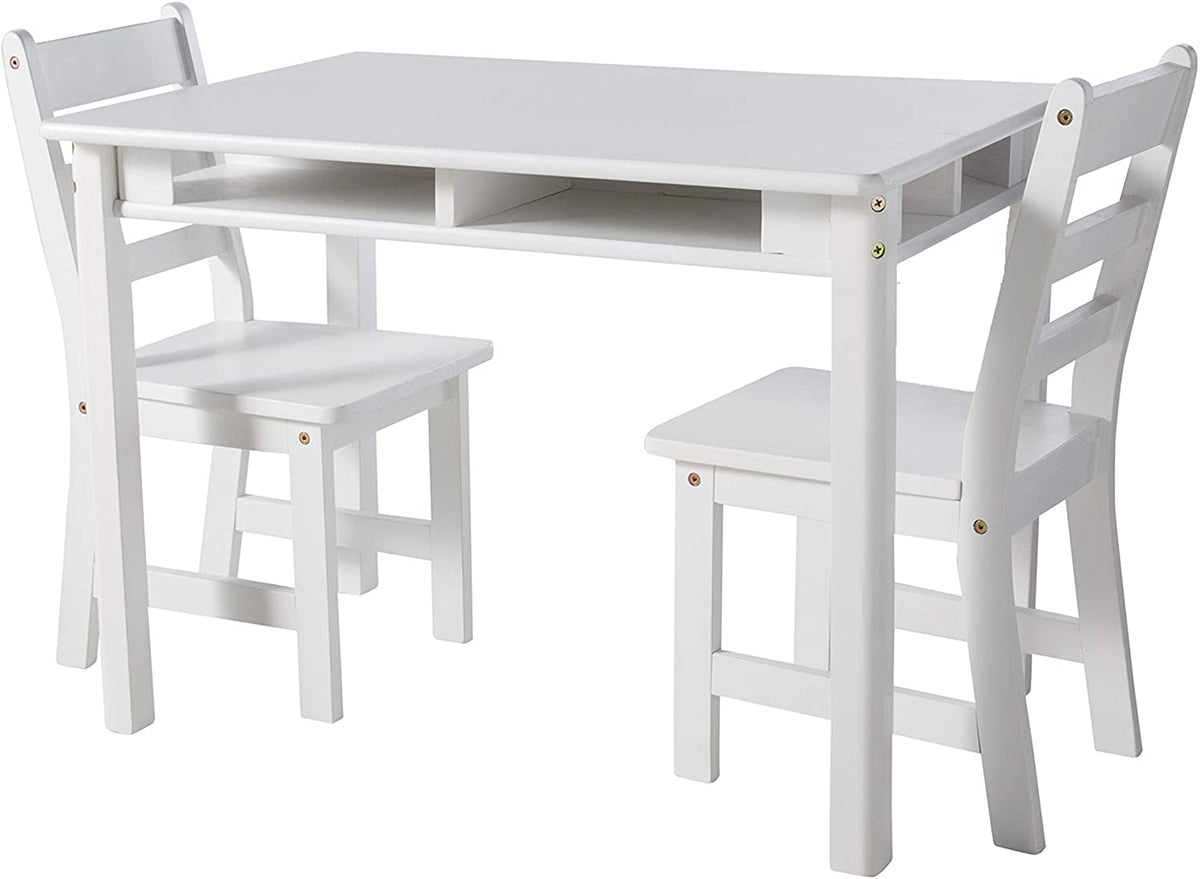 Lipper International Kids Rectangular Table with Shelves & 2 Chairs - White