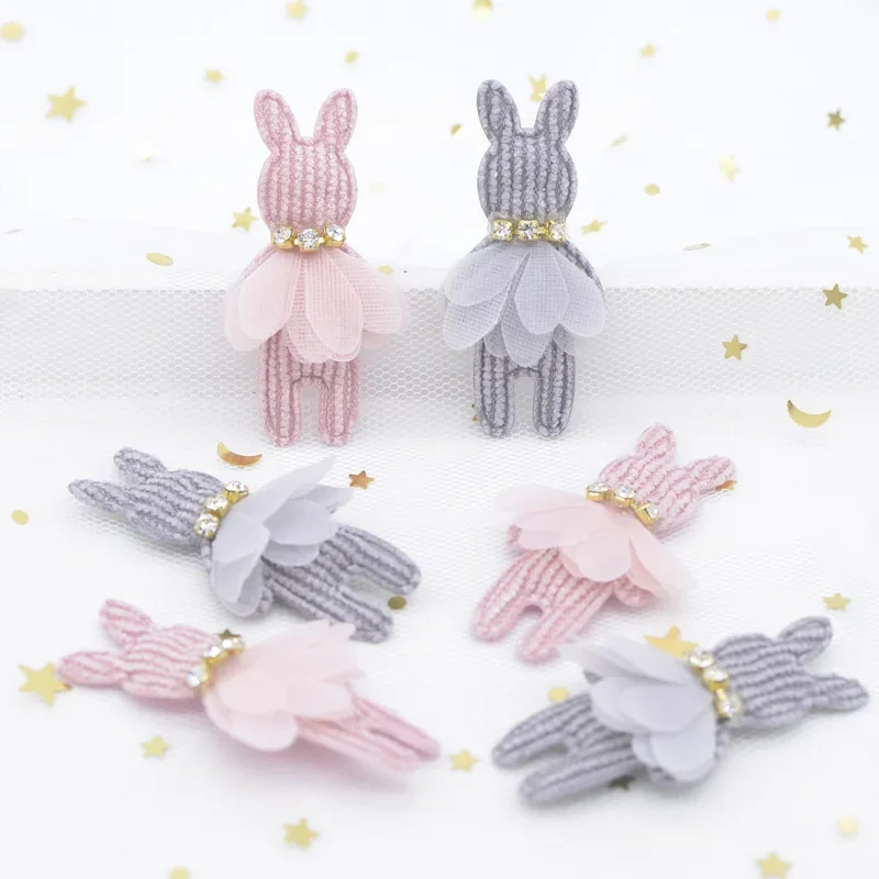 10Pcs Plush Pads Patches Rabbit Baby with Rhinestone Mesh Skirt Applique for Clothes Hat Leggings Sewing Decor DIY Headwear