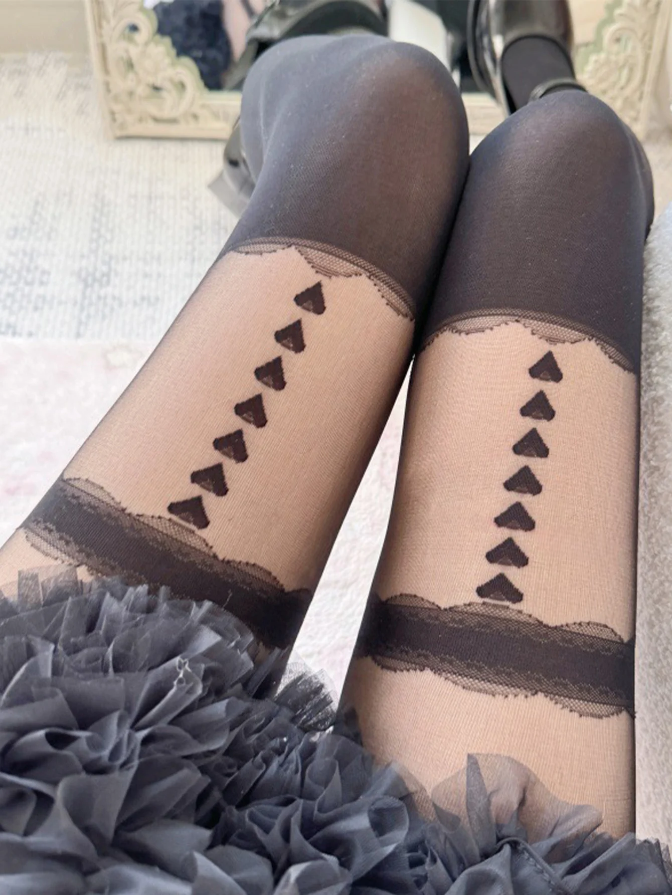 Black White Lolita Hollowed Lace Mesh Stockings Bottomed Pantyhose Japanese Goth Floral Rattan Sexy Stocking Hot Classic Tights