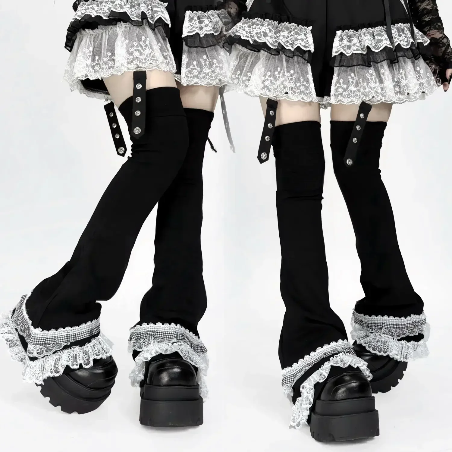 Lace Japanese Harajuku Leg Warmers Y2k Spicy Girl Over Knee Pile Socks Black Flare Long Socks Thigh High Socks Women Leg Covers