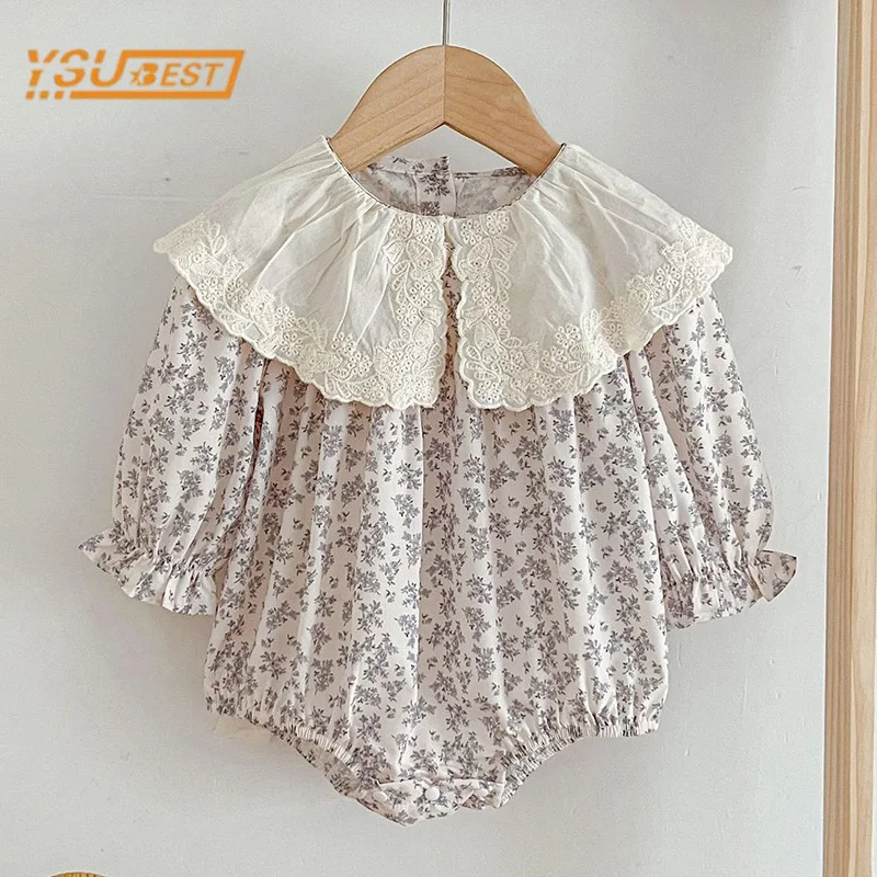 Newborn Kids Baby Girls Long Sleeve Sweet Lace Collar Printing Princess Rompers Autumn Infant Baby Girls Rompers Clothes