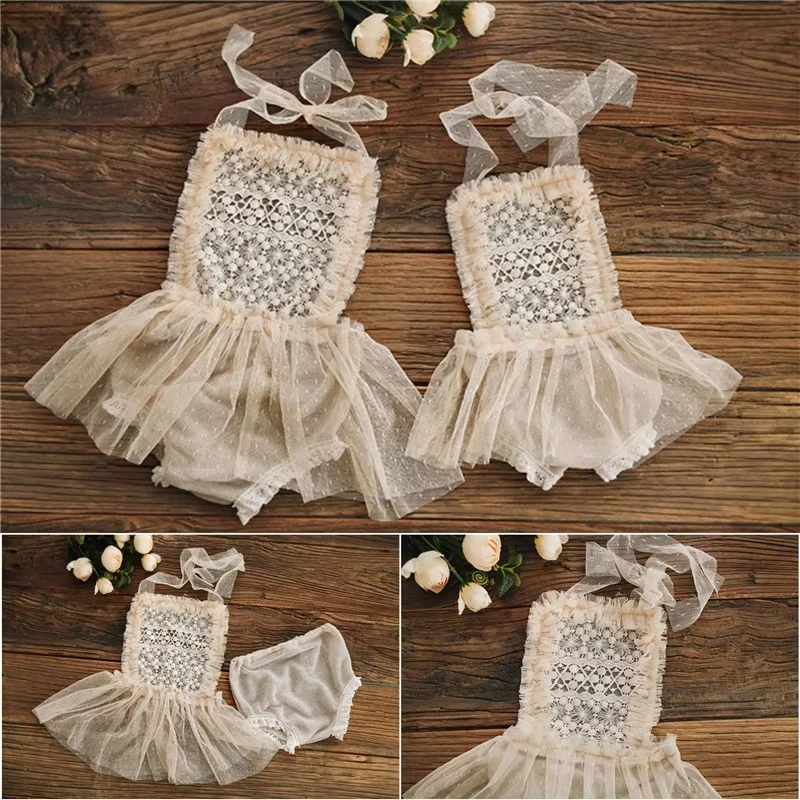 Newborn Baby Girls Photography Props Lace Halter Dress Outfit with Shorts 2pcs Clothing Set for Studio Photo Shoot Photo Prop