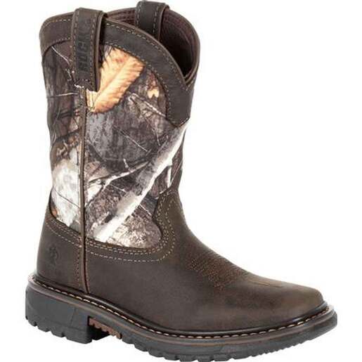 Rocky Youth Ride FLX Waterproof Western Boots - The Rocky Kids' Ride FLX eight-inch brown and Realtree Camouflage wellington featuring Rocky Waterproof is a great durable western boot for kids that like to go outside and play. Convenient pull straps...