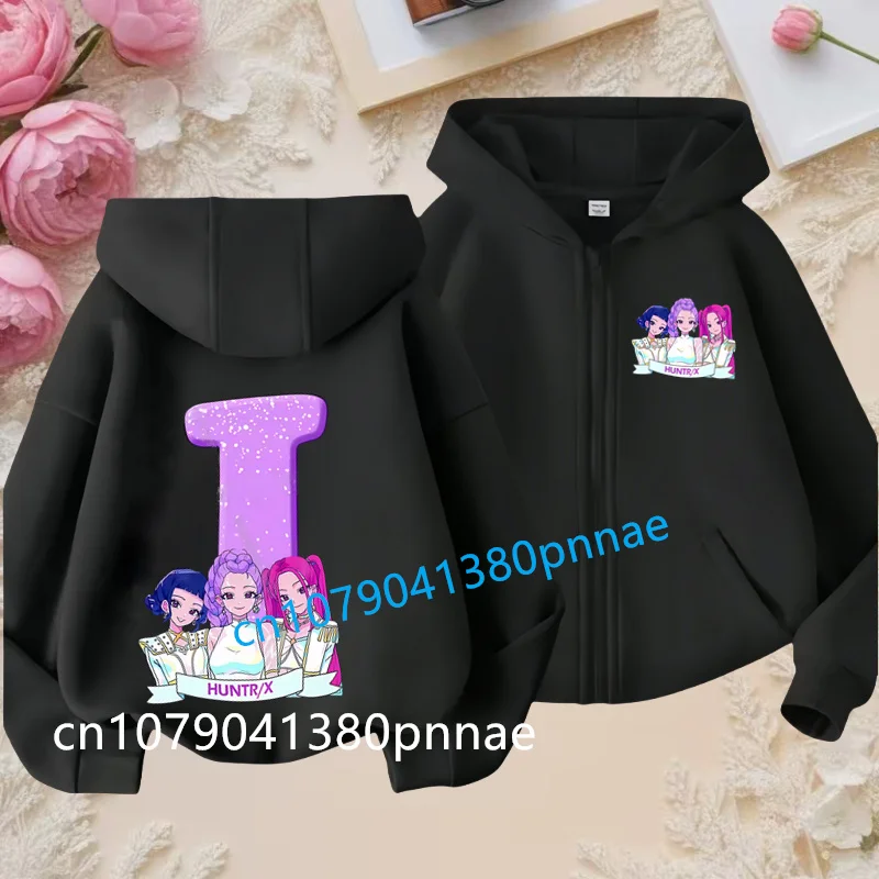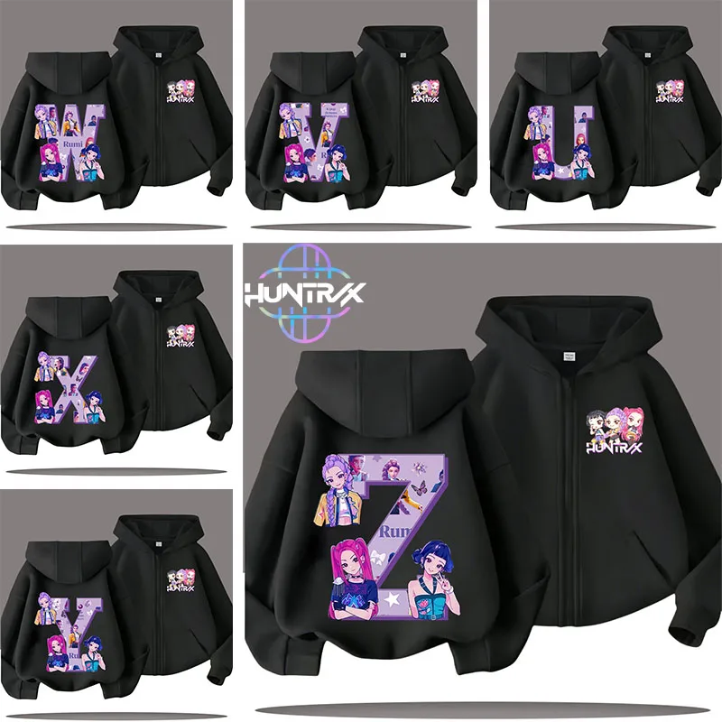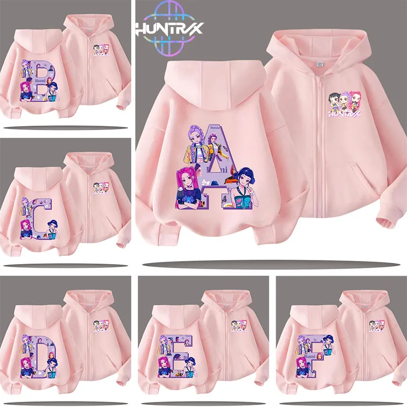 K-pop Demon Hunters letter A-Z cartoon print 3-12 years old girls' casual top with zipper, children's hooded sweatshirt for boys