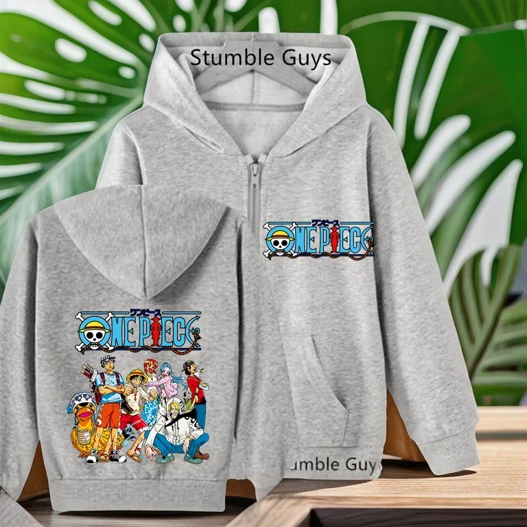 One Pieces Zipper Hoodie Kids Cartoon Print Clothes Anime Long-sleeved Luffy Zoro Hooded Sweatshirt Casual Top for Boys Girls