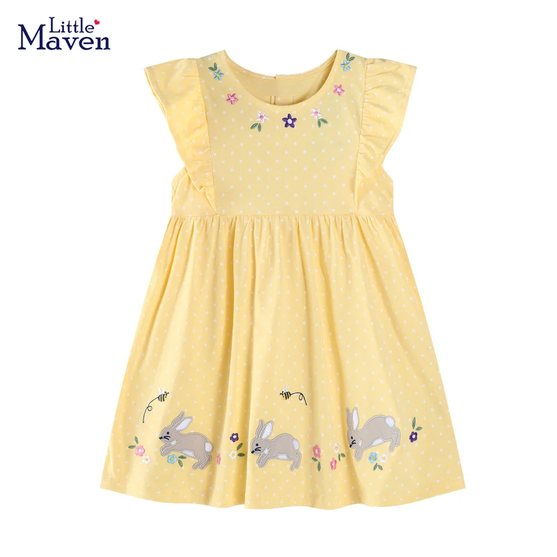 Little maven Children's Clothing Baby Girls 2025 Summer Kids Clothes Cotton Cartoon Rabbits Flowers Dresses Birthday Gifts  Read more