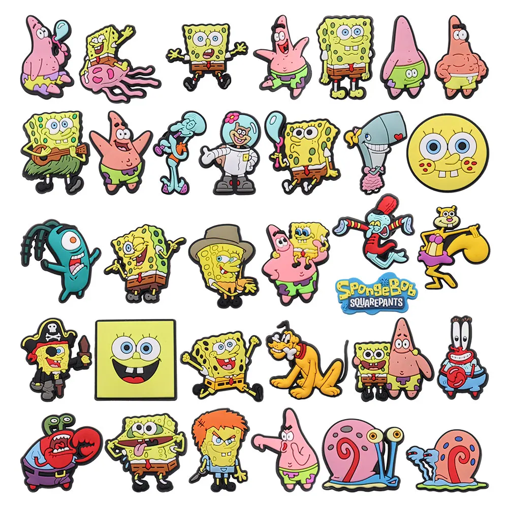 20-33Pcs SpongeBob Crab Patrick Cartoon Sandal Charms Kids Lovely PVC Garden Shoes Buckle Accessories DIY Bracelet