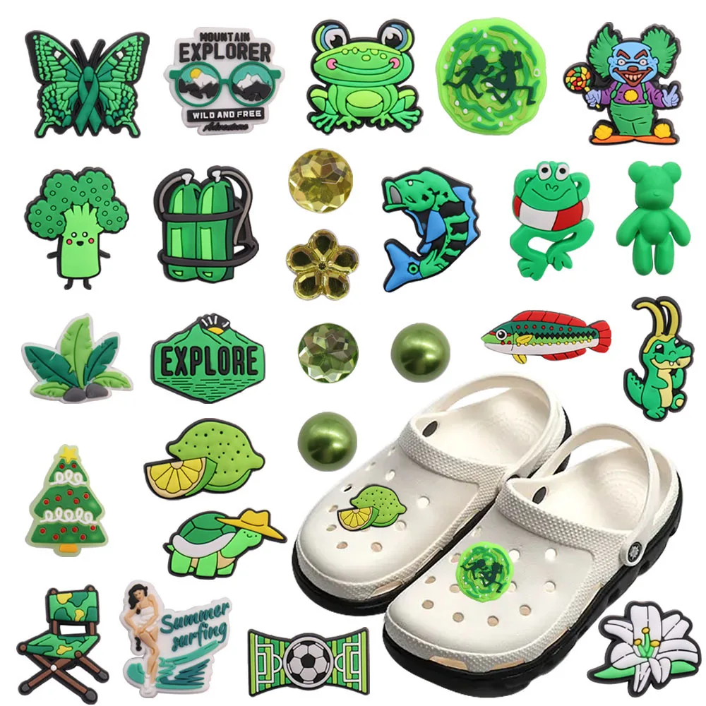 1-26Pcs PVC Turtle Broccoli Frog Bear DIY Kids Shoe Buckle Clog Green Series Designer Shoe Decoration Party Gift