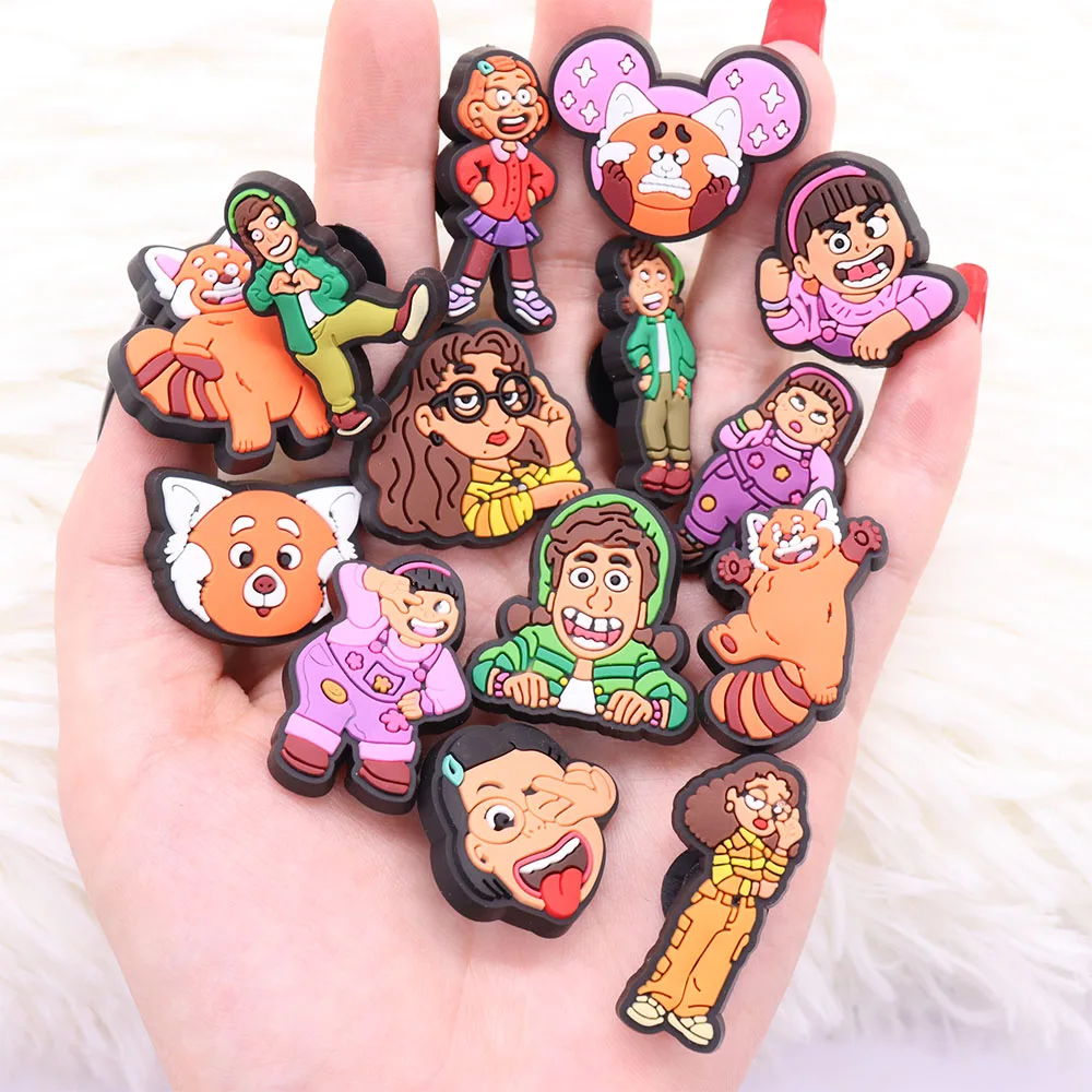 1-14Pcs PVC Cartoon Panda Turning Red Fit Kids Buckle Mei Abby Miriam Shoe Charms Accessories Adorable Designer