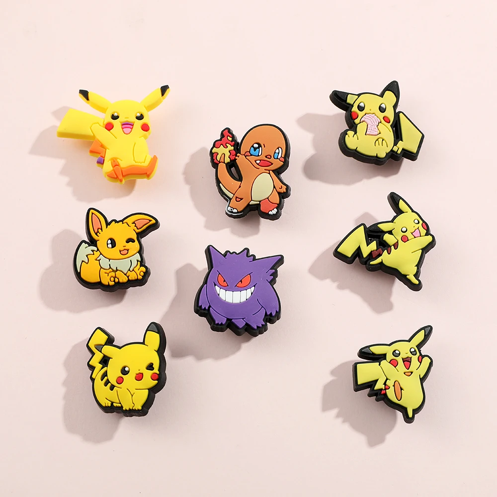 Pokemon Anime Pikachu Gengar Axew Mew Mewtwo PVC Cartoon Shoe Buckle Crocs Decoration Accessory Kids Toys Birthday Gift