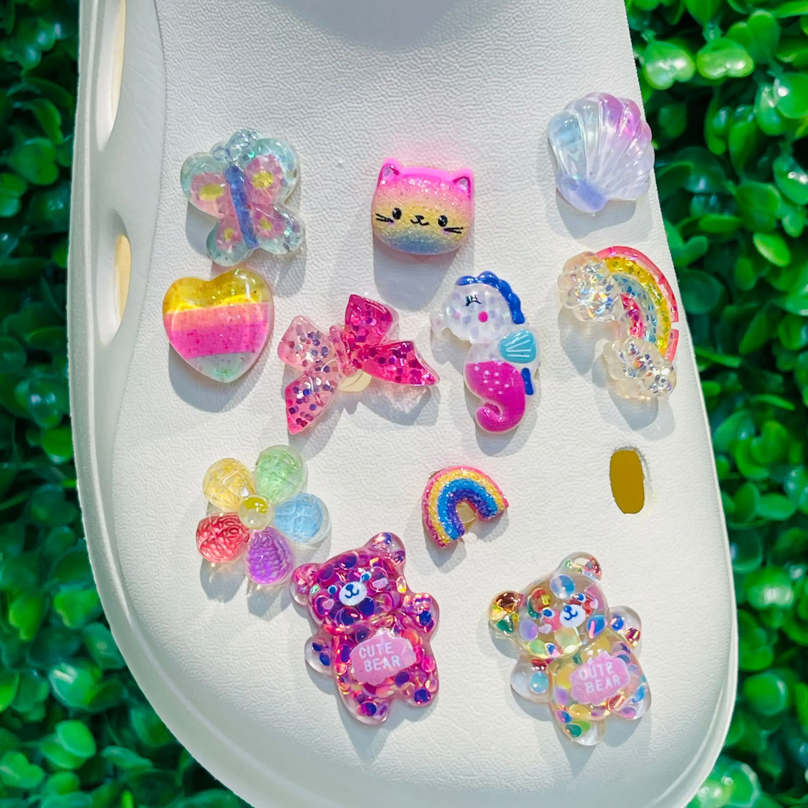 New Arrival 10Pcs Lovely Butterfly Bear Resin Shoes Charms Decorations Rainbow Shell Cat Children Bracelet Buckle