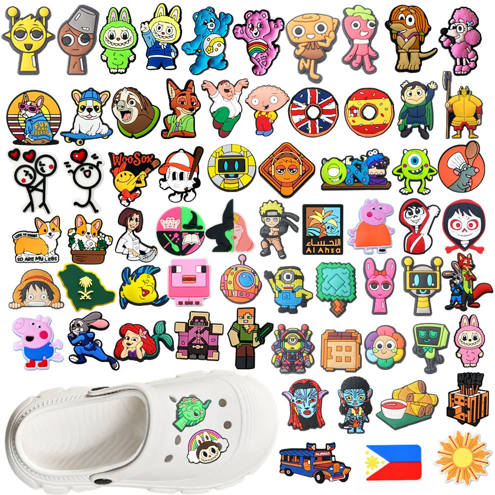 6-12pcs Hot sales MINISO Cartoon Series PVC Shoes Accessories Fit with Hole wristbands DIY Shoe Decorations Buckle Kids Gifts  Read more