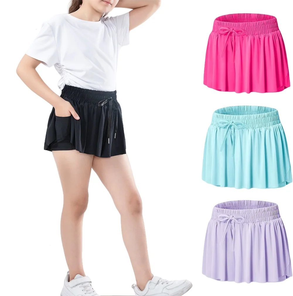 3-15 Years Girls Flowy Shorts Butterfly Shorts With Pocket 2-in-1 Athletic Running Shorts For Kids Active Workout Sports Tennis