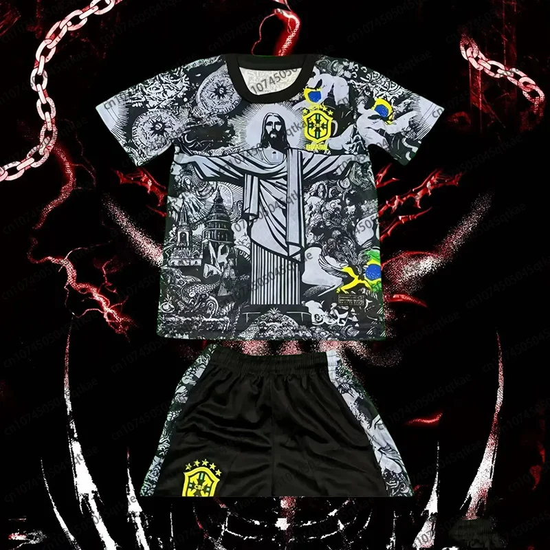 25/26 Latest Football T-shirt Shorts Suit Jesus Brazil Edition Special Training Sets Summer Quick-drying Adult/kid Sport 2 Piece