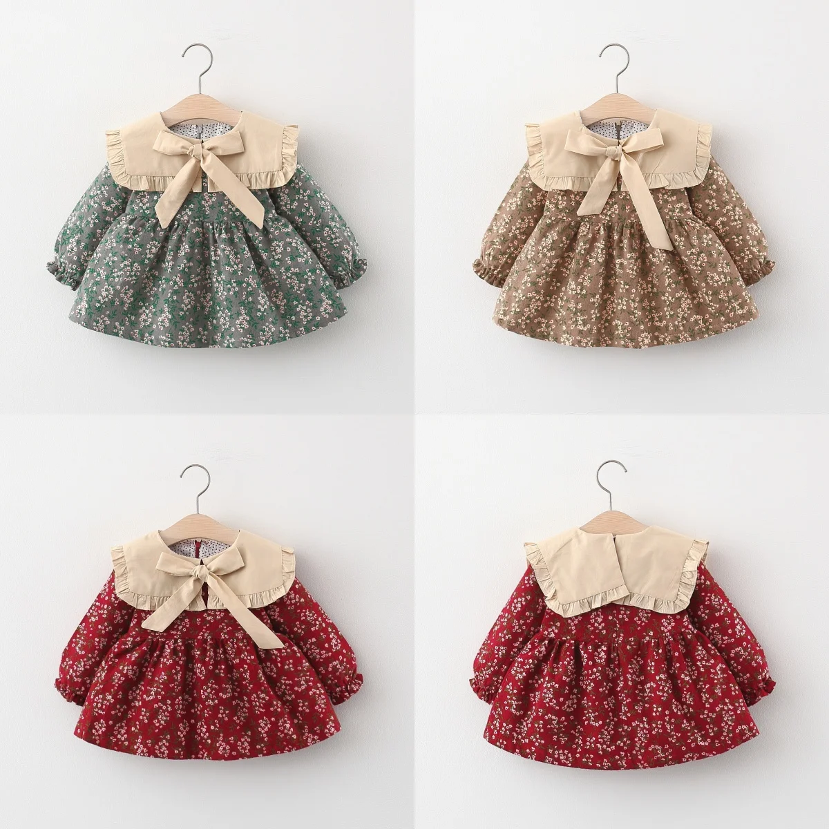 Fashion Baby Girl Dresses Floral Long Sleeve Cotton Toddler Girl Dress For 1-6Yrs Baby Girl Party Dress Girls Clothes