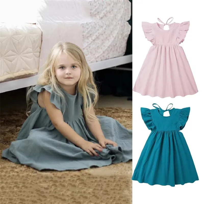 Baby Dresses Linen Cotton Summer Girls Clothes Ruffles White Princess Dress 1st Birthday Party for 0-6Y Flower Girls Clothing