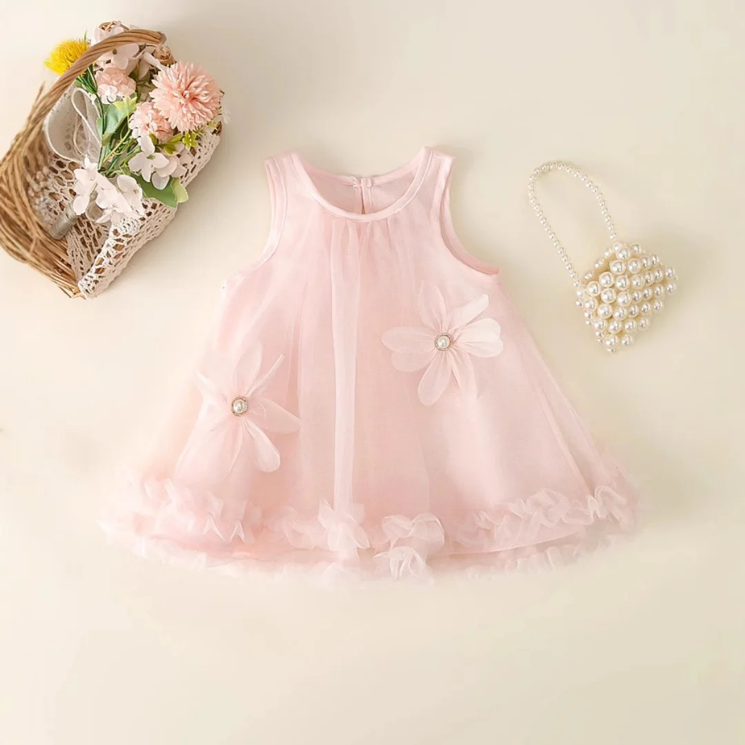 Baby Clothes Girl Summer Floral Pattern Solid Color Sleeveless Ruffled Design Fluffy Baby Girl Dress Cute Casual Baby Dresses