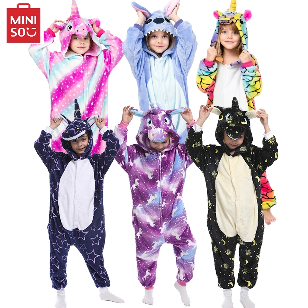 MINISO children unicorn pajamas kids stitch pijamas boys animal jumpsuits baby girls flannel kigurumi onesies for winter