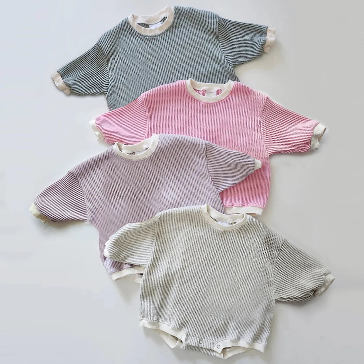 2023 Baby Waffle Sweatshirt Romper Newborn Infant Baby Girls Boys Cotton Oversized Romper Long Sleeve Toddler Clothes Jumpsuits
