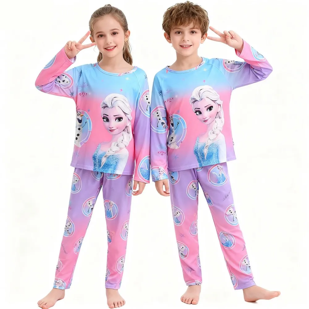 Disney Girls Pajamas Anna Elsa Clothing Sets Kids Long Sleeve +Pant 2Piece Children Sleepwear Toddler Homewear Girl Nightgown